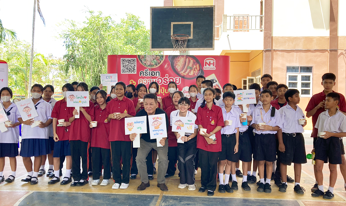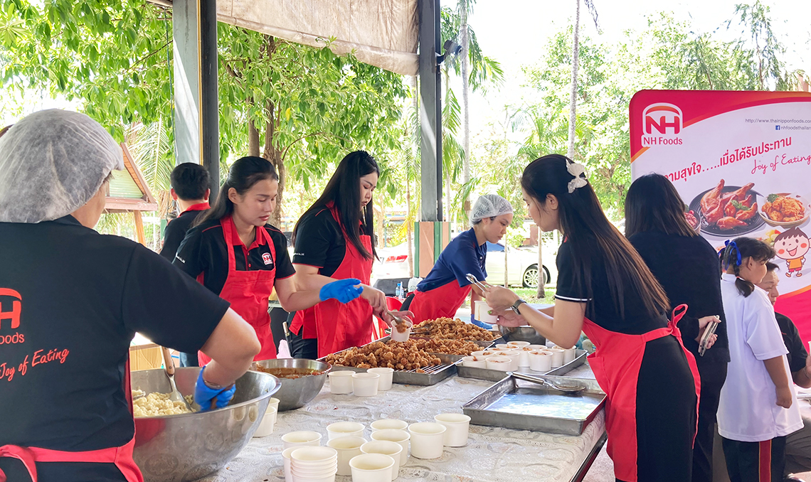 Last Thursday, May 30, 2024, Thai Nippon Foods Company Limited organized a CSR activity to distribute lunch at Wat Sakae School. Sutthitham Pracha Songkroh Khlong Khao Mao Subdistrict, Uthai District, Phra Nakhon Si Ayutthaya Province Total number of students approximately 320 people.