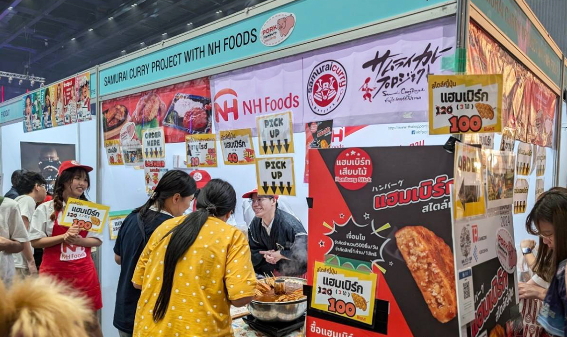 On August 30 – September 1, 2024, Thai Nippon Foods Company participated in the NIPPON HAKU BANGKOK 2024 event and co-created the “SAMURAI CURRY PROJECT WITH NH FOODS”. The purpose of this event was to donate proceeds from the sale of the product “Pork Hamburg with Demiglace Sauce” to the Samurai Curry Project, a project in which students participated and used the products to make food menus for sale at the event. All proceeds from the sale of products will be donated to charity.
