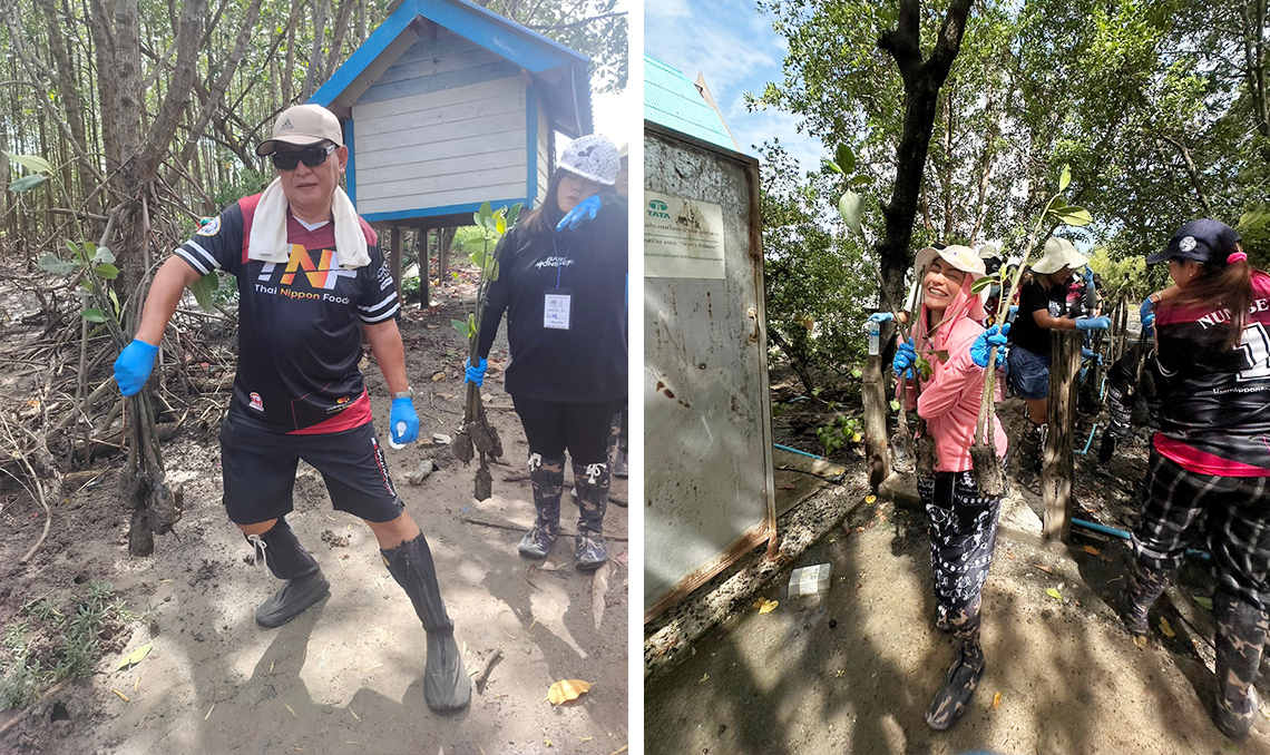 Last Saturday, July 6, 2024, Thai Nippon Foods Company Limited organized a mangrove planting activity at the study center and conserve the Khlong Tamru mangrove forest Chonburi Province “Mangrove Reforestation Project”. This activity included a total of 120 peoples, with Thai Nippon Foods employees continuing to do reforestation activities to fulfill NH Foods Group’s vision of contributing to a sustainable environment, by creating green space which creates balance between humans nature and environment.