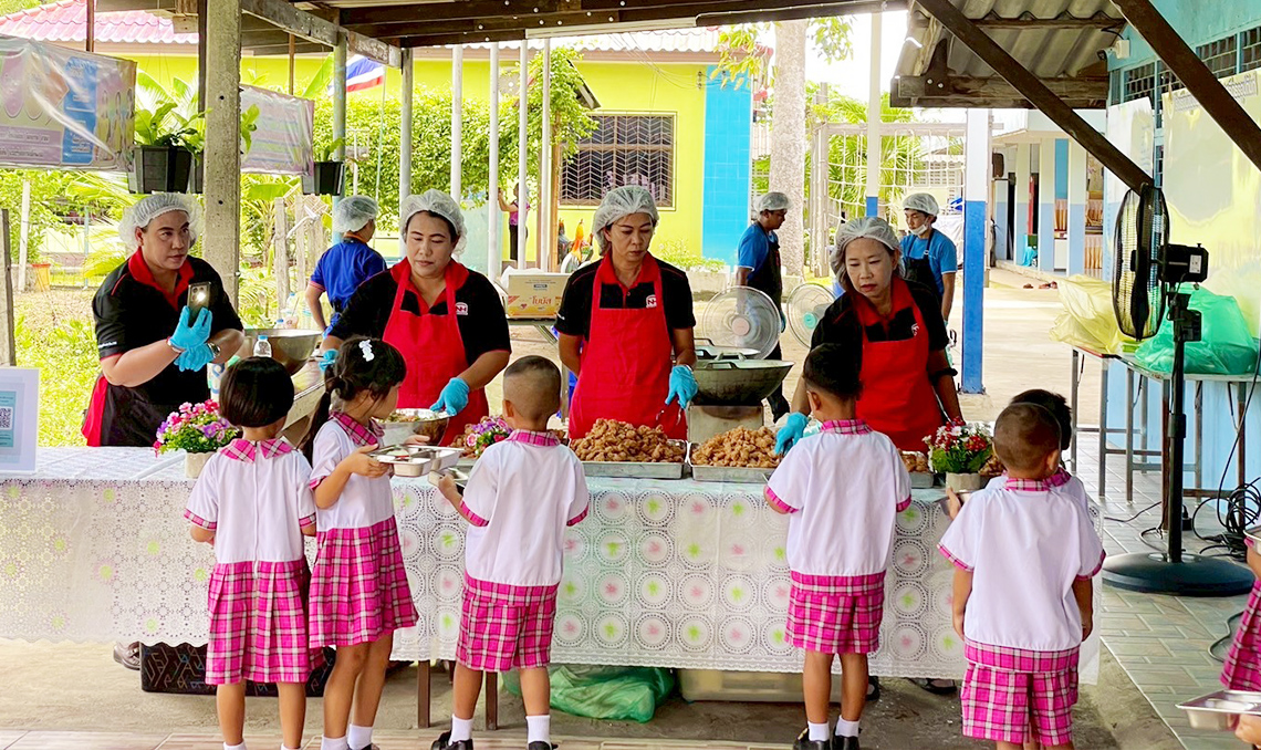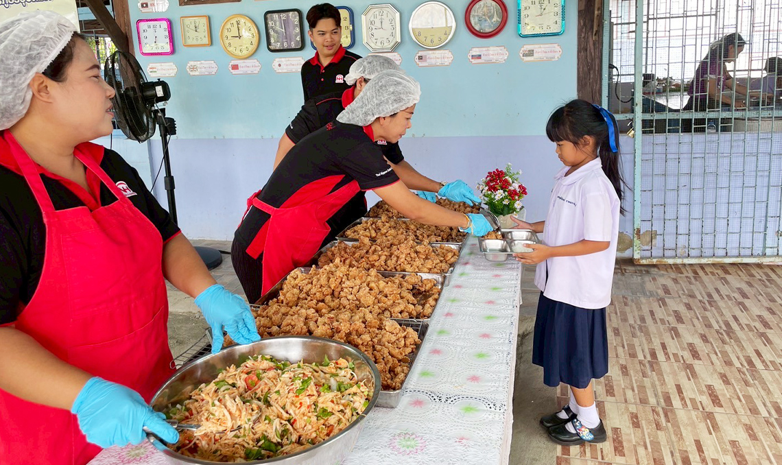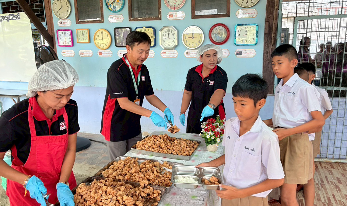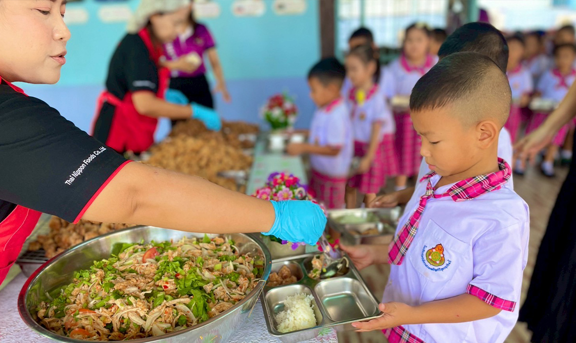 ทีมงานได้นำผลิตภัณฑ์ของไทยนิปปอนฟู้ดส์มาปรุงเป็นเมนูอาหารกลางวันสุดพิเศษ โดยเฉพาะเมนู ไก่ทอดคาราอะเกะ ที่ได้รับเสียงตอบรับอย่างดีจากเด็ก ๆ ด้วยรสชาติที่อร่อย กรอบนอกนุ่มใน พร้อมทั้งมีเมนูอื่น ๆ ที่หลากหลายและมีคุณค่าทางโภชนาการ เพื่อส่งเสริมสุขภาพที่ดีให้กับเยาวชนในพื้นที่
