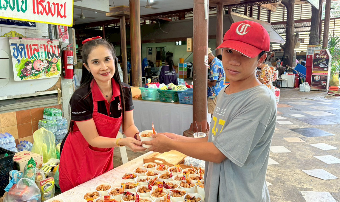 ในครั้งนี้ บริษัทฯ ได้เลี้ยงอาหารกลางวันให้กับเด็กและผู้สูงอายุ รวมทั้งสิ้นประมาณ 300 คน เพื่อส่งมอบความสุขและเติมเต็มรอยยิ้มให้กับผู้เข้าร่วมกิจกรรม โดยมีการนำผลิตภัณฑ์ “ไก่ทอดคาราเกะ” ของบริษัทฯ มาปรุงอย่างพิถีพิถัน เสิร์ฟความอร่อยให้กับทุกคนอย่างอบอุ่นเป็นกันเอง