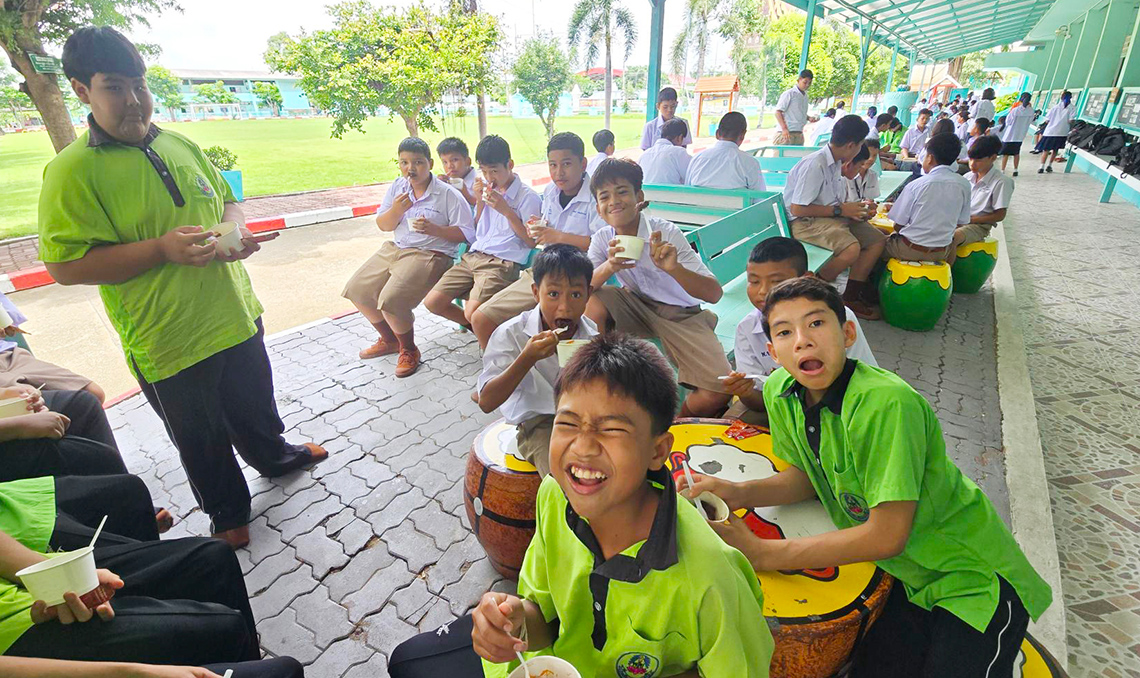 กิจกรรมครั้งนี้ ทีมงานได้จัดเตรียมอาหารกลางวันสุดพิเศษ ได้แก่ ไก่ทอดคาราเกะ และไก่ทอดคาราเกะซอสดำ ให้เด็ก ๆ ได้อิ่มอร่อยกันอย่างเต็มที่ เพื่อเติมพลังและสร้างรอยยิ้มก่อนกลับเข้าสู่ห้องเรียนอย่างสดใส บรรยากาศภายในงานเต็มไปด้วยความสุข เสียงหัวเราะ และช่วงเวลาที่สร้างความประทับใจให้กับทุกคนที่ได้มีส่วนร่วม