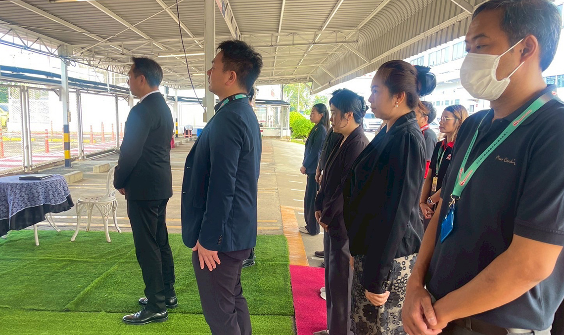 • เวลา 08.10 น. คณะผู้บริหารและพนักงานทุกท่านพร้อมเพรียงกัน ณ บริเวณหน้าพระบรมฉายาลักษณ์