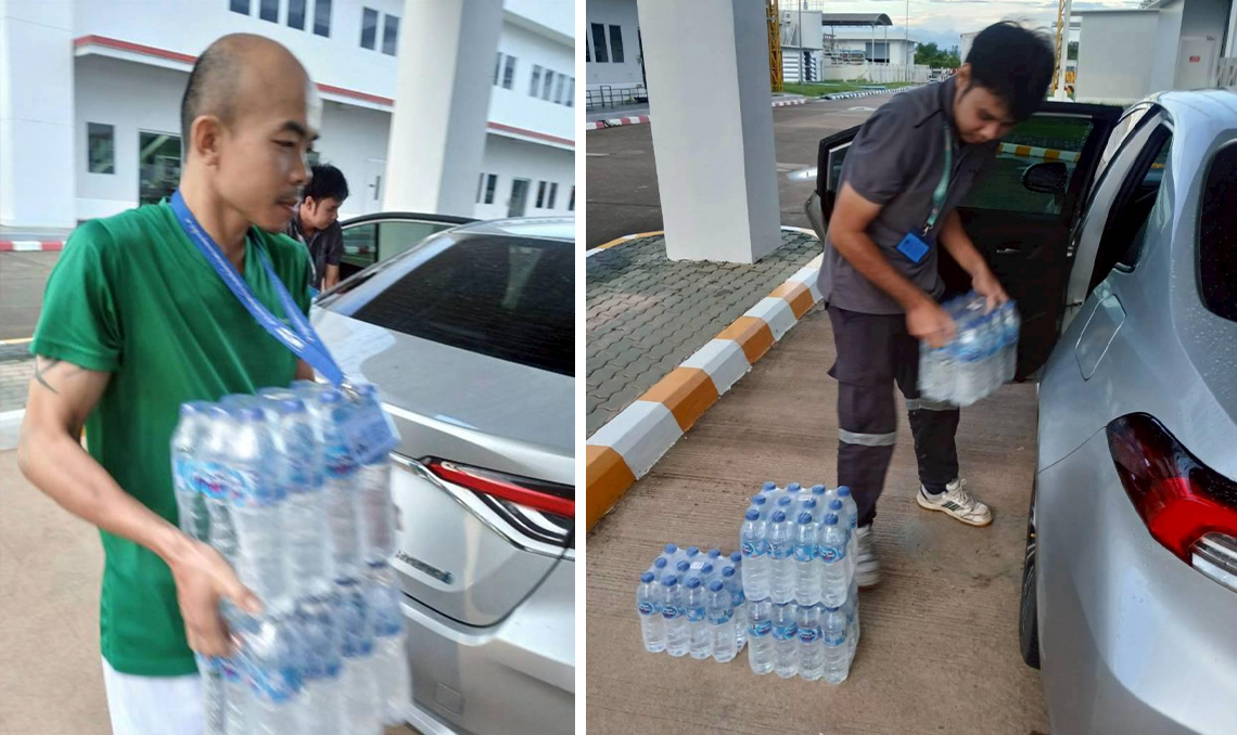 ข้าวสาร อาหารแห้ง ไข่ น้ำดื่มสะอาด และสิ่งอุปโภคบริโภคที่จำเป็น ให้ถึงมือพนักงานและครอบครัวของพนักงานที่ประสบภัยโดยตรง